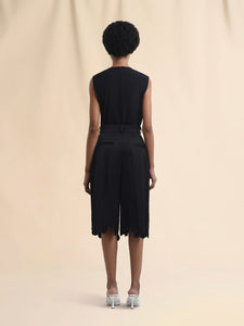 Duchess silk Bermuda shorts with a flared silhouette, regular waist, and double pleats on the front. Scalloped hem with flower details.Primary Fabric: 60% Viscose-Rayon Woven 40% Cotton Woven - Pocket Lining: 100% Cotton Woven