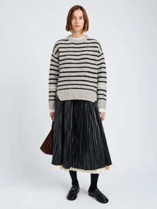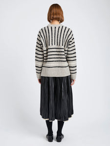 The Leonie Sweater in Stripe Wool is knit in plush wool stripes to a relaxed crew-neck silhouette, finished with thick ribbed trims and side splits at the hem.