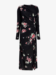 The Trudie Dress in Printed Silk Viscose is crafted to a slim silhouette with a refined straight neckline and gathered ruching through the body.