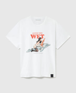 Crafted from organic cotton and shaped to a classic, boxy t-shirt silhouette, this tee is topped with a graphic designed in collaboration with artist Jeff Koons. Stella’s playful and sexy ’Slippery When Wet’ slogan, pulled from her first-ever runway collection in 2001, is printed across the chest. Slip it on beneath a tailored power suit.